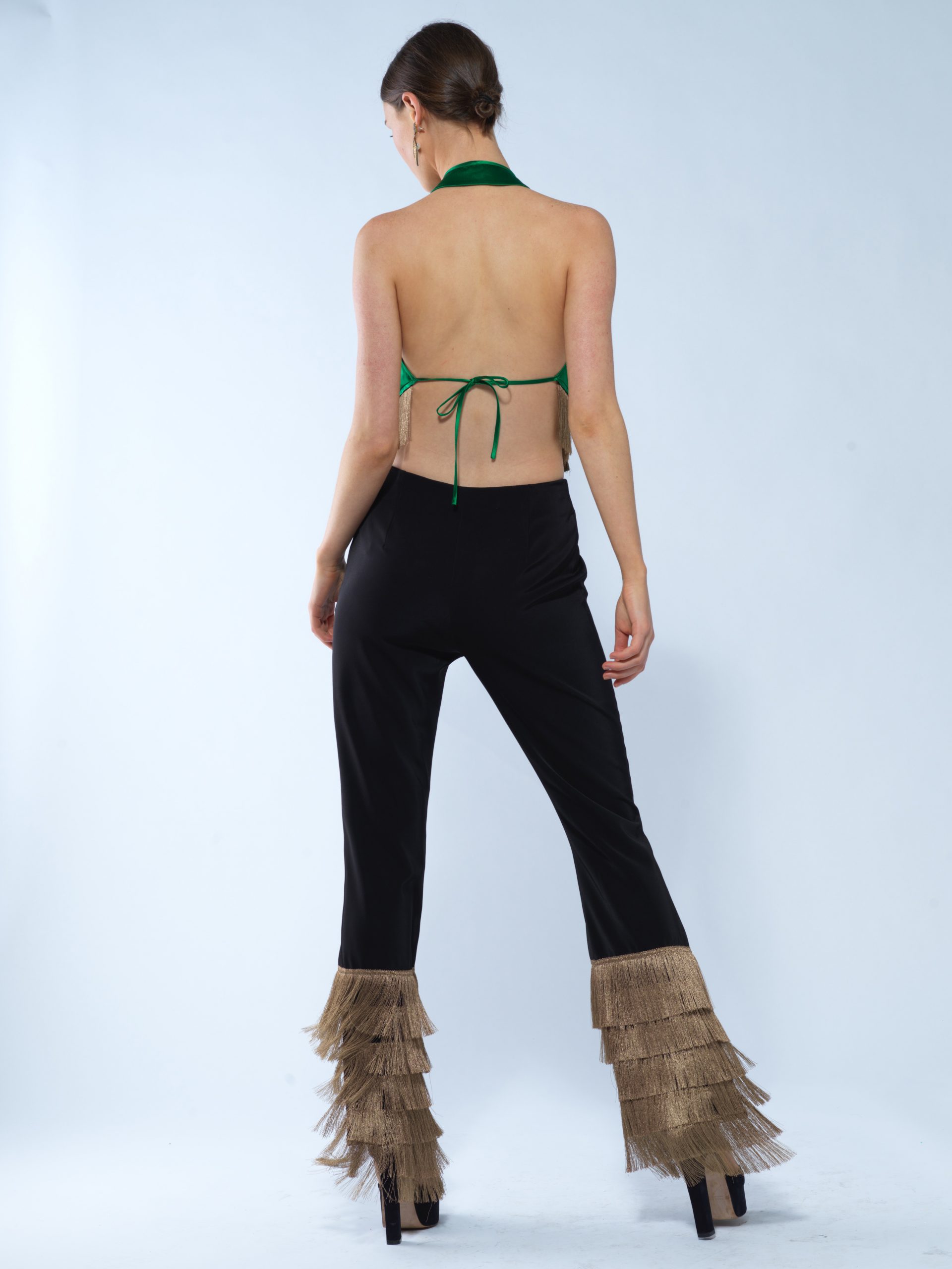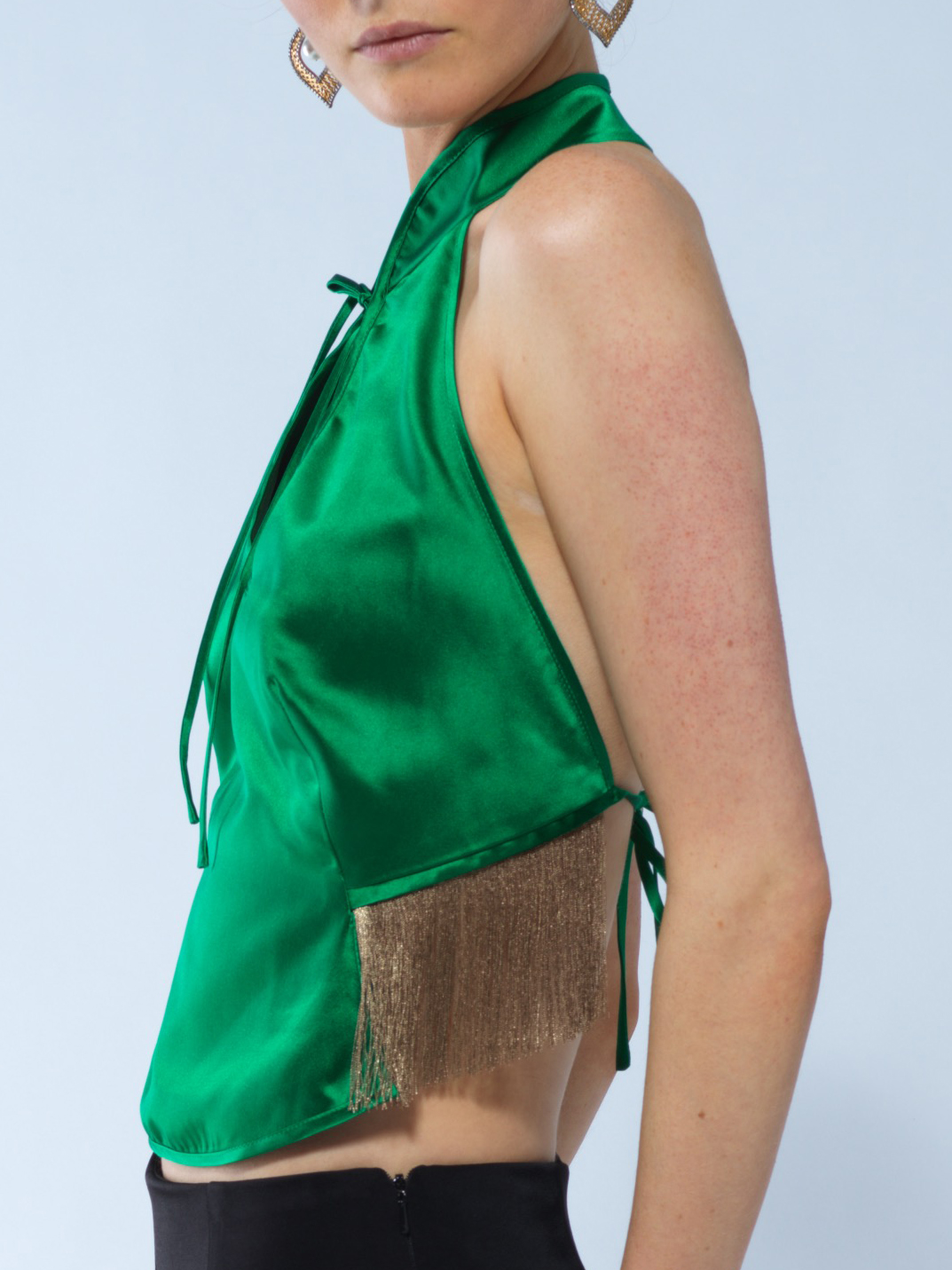 Emerald Duchess Satin Silk with Gold tassel detailing’