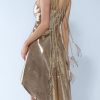 Gold Sequin, above the knee dress, longer in the back with feather & bead detailing In Gold sequins